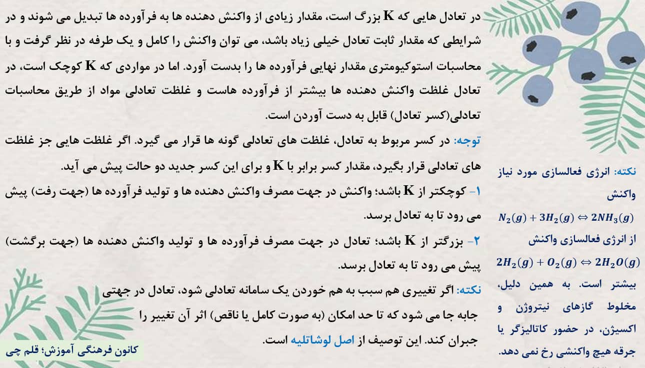 سلام در این مطلب میخواهیم با هم به جمع بندی نکات واکنش های تعادلی و عوامل موثر بر آن به همراه حل تست (مطابق با آزمون 3 اردیبهشت) و خلاصه نکات که برای پاسخگویی به سوالات آزمون باید به آنها مسلط باشید،بپردازیم.