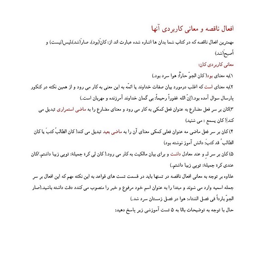 افعال ناقصه و معانی کاربردی آنها همراه 5 تست ـ مریم آقایاری