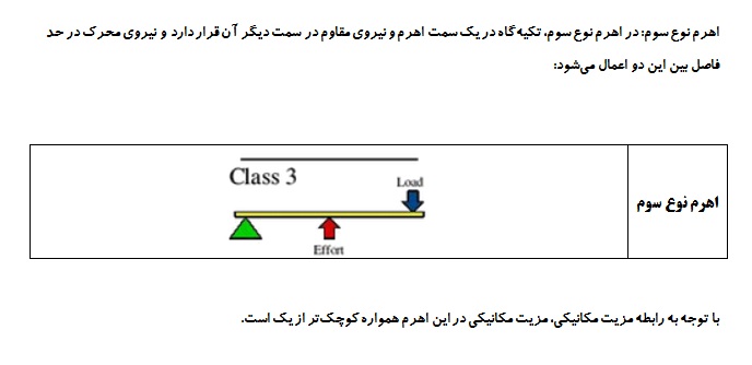 اهرمها را میتوان به سه نوع اهرم نوع اول، اهرم نوع دوم و اهرم نوع سوم تقسیم کرد.