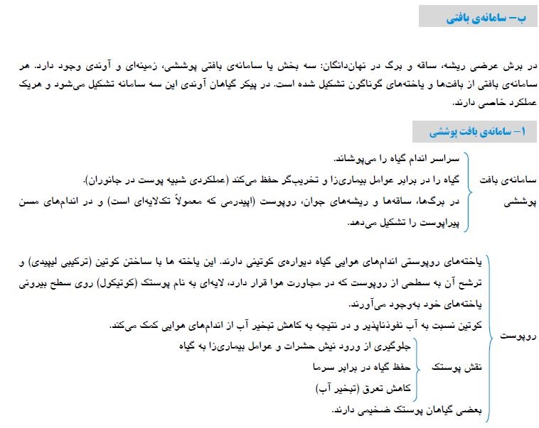 در این مطلب خلاصه نکات مبحث سامانه بافتی، فصل از یاخته تا گیاه مربوط به زیستشناسی دهم تجربی، آزمون 17 اردیبهشت، آورده شده است .