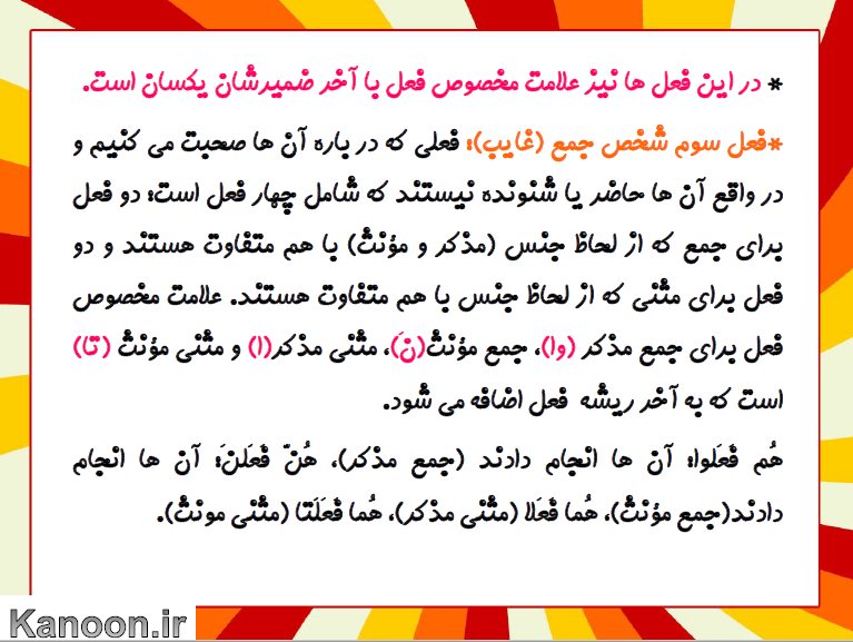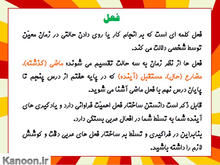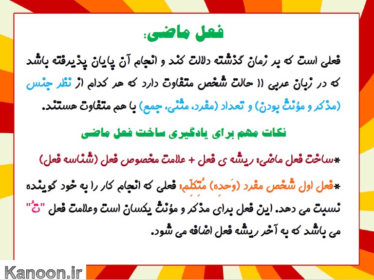 هفتمی های عزیز سلام!در این pdf برای شما نکات کاربردی از ساخت فعل های ماضی و علامت مخصوص هر فعل را به همراه مثال آماده کرده ایم.امیدوارم این مطلب برای شما دوستان عزیز، مفید واقع گردد.