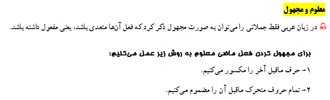 معلوم ومجهول وجارومجرور-5 تست ازکتاب جامع عربی:فاطمه منصورخاکی