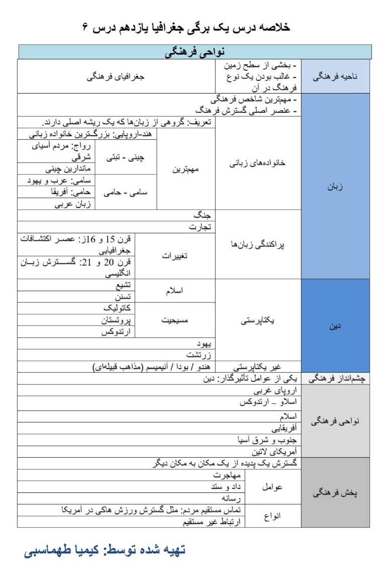 در این مطلب خلاصهدرس یک برگی جعرافیا یازدهم درس ششم (نواحی فرهنگی) را مشاهده میکنید که مخصوص دوران جمع بندی تهیه شده است.