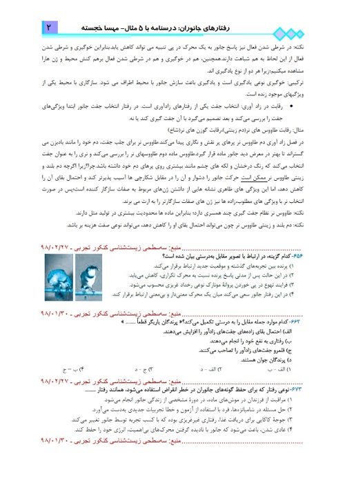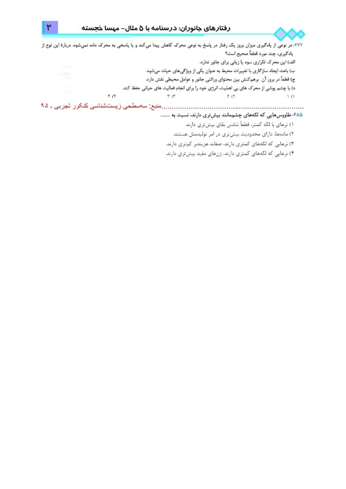 فایل ضمیمه شامل درسنامه با 5 سوال از کتاب سه سطحی زیست شناسی (3)، مبحث رفتارهای جانوران، مطابق با برنامه راهبردی آزمون 17 اردیبهشت می باشد.این مطلب توسط مهسا خجسته تهیه شده است.* گروه پشتیبانان ویژه کانون *