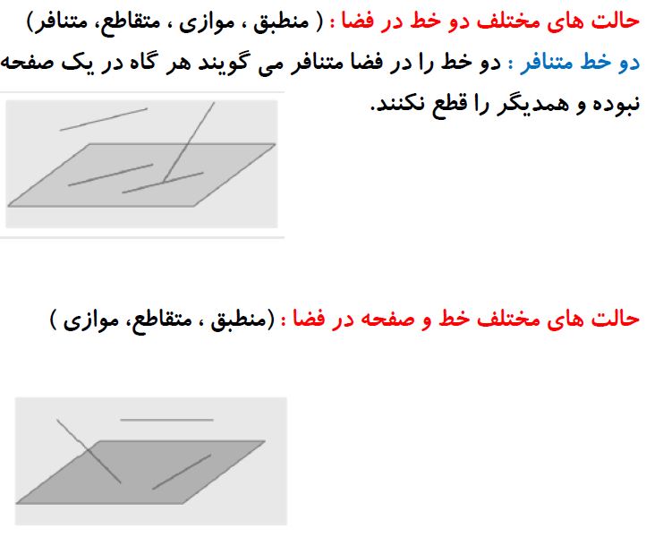 خلاصه نکات خط،نقطه و صفحه- تجسم فضایی- فاطمه احدزاده