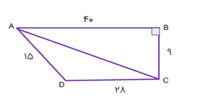 مساحت مثلث ABC به اندازۀ 54 مترمکعب کمتر از مساحت مثلث ADC است.