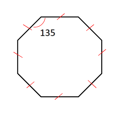 هشت ضلعی منتظم : هشت ضلعی است که تمام اضلاعش با هم و تمام زوایایش با هم مساوی باشند.1. اندازه هر زاویه داخلی هشت ضلعی منتظم 135 درجه است.