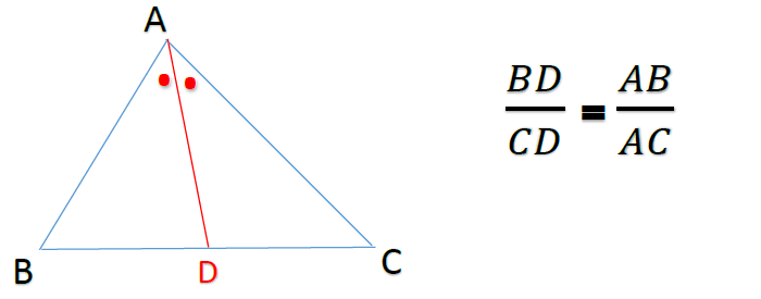 - در هر مثلث، نیمساز هر زاویه داخلی، ضلع روبه رو به آن زاویه را به نسبت اندازه های ضلع های آن زاویه تقسیم میکند.