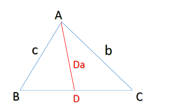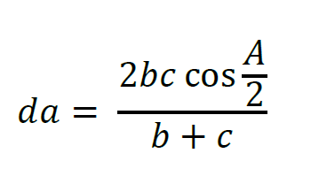 از جمع مساحت مثلث های ABD و ACD و مساوی قرار دادن مجموع آنها با مساحت مثلث ABC و کمک گرفتن از اتحاد مثلثاتی COS 0.5A * 2 SIN 0.5A = SIN A، به رابطه جدیدی برای محاسبه طول نیمساز داخلی زاویه A می رسیم.