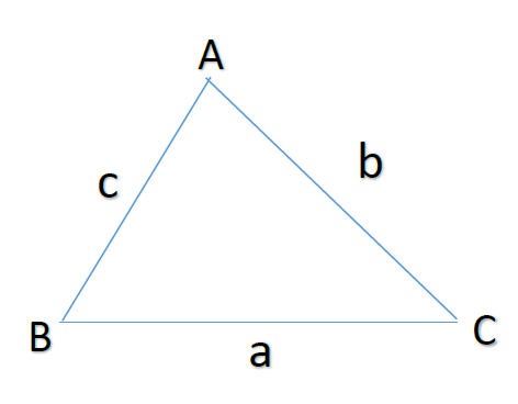 در مثلث ABC اگر اضلاع مثلث به شکل رو به رو باشند و P = 0.5 (a + b + c ) نصف محیط مثلث باشد ، آن گاه مساحت مثلث برابر است با :