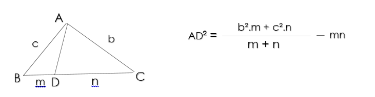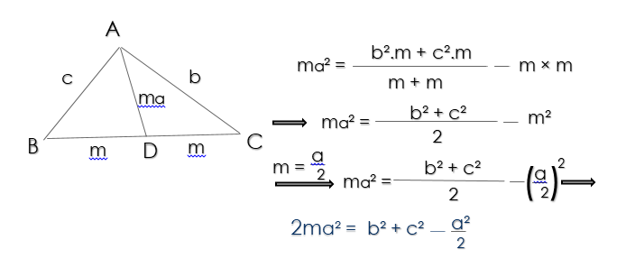 توجه : به کمک قضیه استوارت میتوان طول میانه های مثلث را بدست آورد.