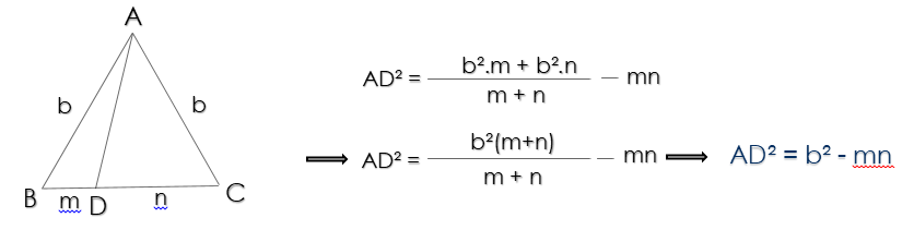 توجه : با نوشتن قضیه استوارت در دو مثلث ABC و ADC می توان درستی تساوی فوق را اثبات کرد.