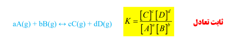 نکته: تنها عامل موثر بر ثابت تعادل فقط دماست و باتغییر غلظت، تغییر فشار، تغییر حجم ظرف واکنش و یا به کار بردن کاتالیزگر، مقدار ثابت تعادل(K) تغییر نمی کند.
