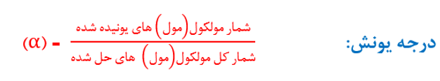 به فرآیندی که در آن یک ترکیب مولکولی درآب به یون های مثبت و منفی تبدیل می شود، یونش می گویند.