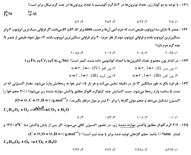 پاسخ کامنت مبین افتخاری، تجربی نظام جدید - خوی - میانگین تراز 6833 باید بنویسی نوترونها مساوی با تعداد الکترون ها ضربدر 1.2(یک ممیز دو دهم)