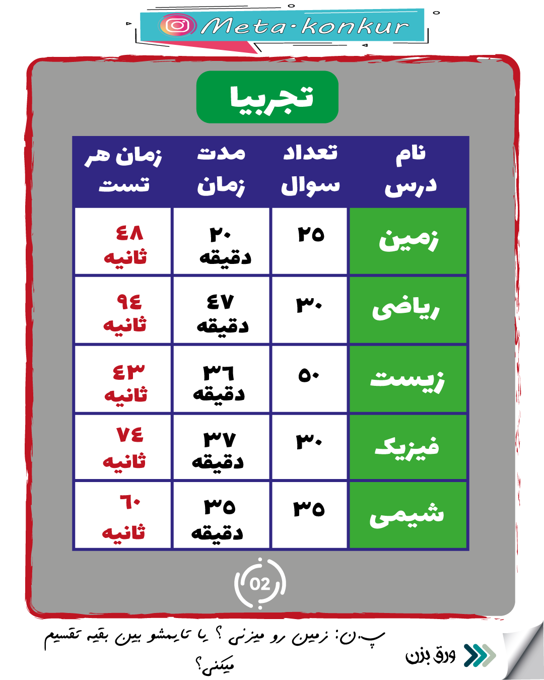تبصره سوم: راستی تایم های استاندار برای هر درس رو میدونی؟