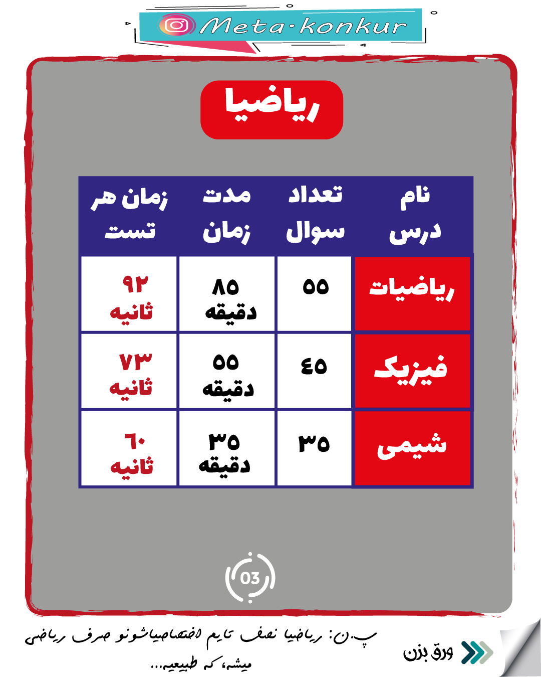 3.مدت زمانی حل تست های اون مبحث در کنکور (یعنی معمولا تست های اون مبحث زمان گیر هستن یا نه)