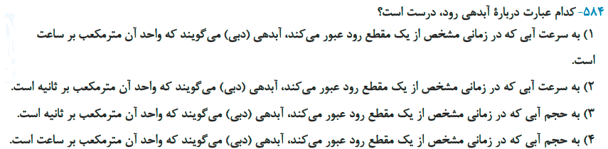 به حجم آبی که در زمان مشخص از یک مقطع معین رود عبور میکند، آبدهی رود (دبی) میگویند که واحد آن مترمکعب بر ثانیه است.
