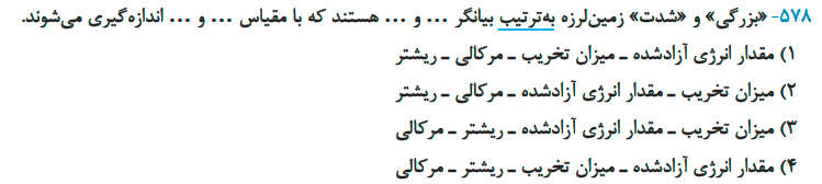 • بزرگی ← مقدار انرژی آزاد شده ← ریشتر(مقیاس)
