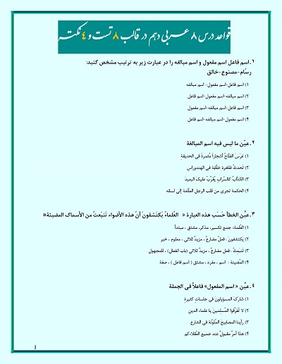 دانش آمـوزان عـزیز در این مطلــب خلاصهای از قـواعد درس 8 عــربی دهم (صناعة التلمیـع فی الأدب الفارسی) میباشد.