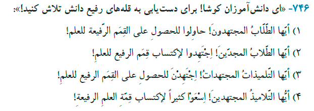 مثال: یا رحمانُ یا رحیمُ! / یا تلمیذُ هذِّب نفسَک!