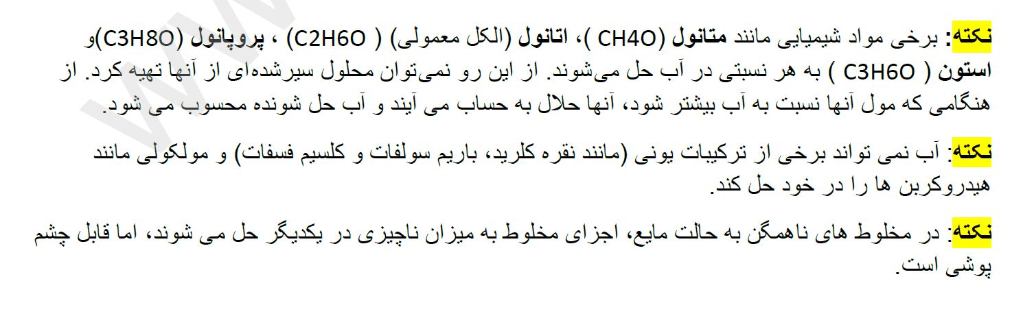 در این مطلب درسنامه ای جامع برای شما عزیزان به همراه مثال از فصل سوم کتاب شیمی دهم ، آب آهنگ زندگی آورده شده است. این درسنامه قابل استفاده برای