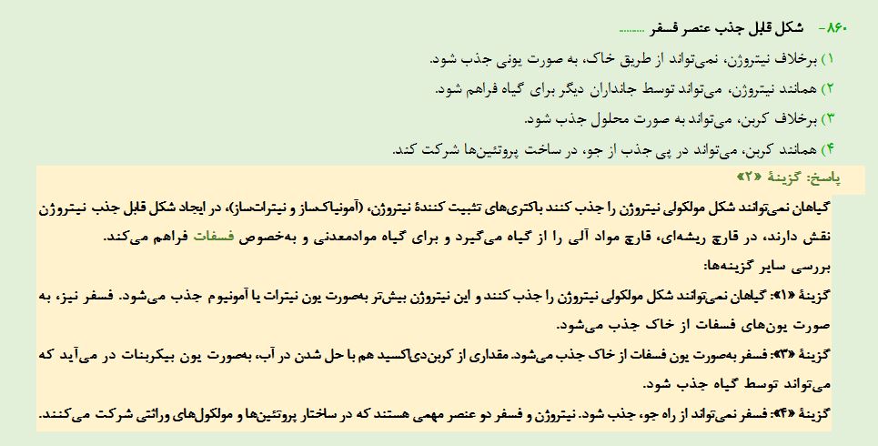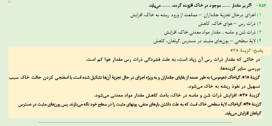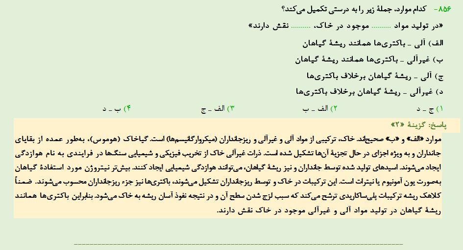 5 سوال کتاب آبی زیستشناسی دهم( به همراه پاسخ) از مبحث خاک و مواد مغذی از فصل جذب و انتقال مواد در گیاهان، متناسب با آزمون 17 اردیبهشت در این مطلب آمدهاست.