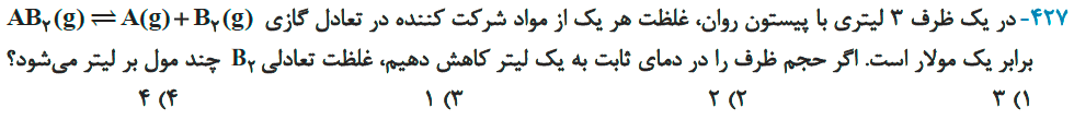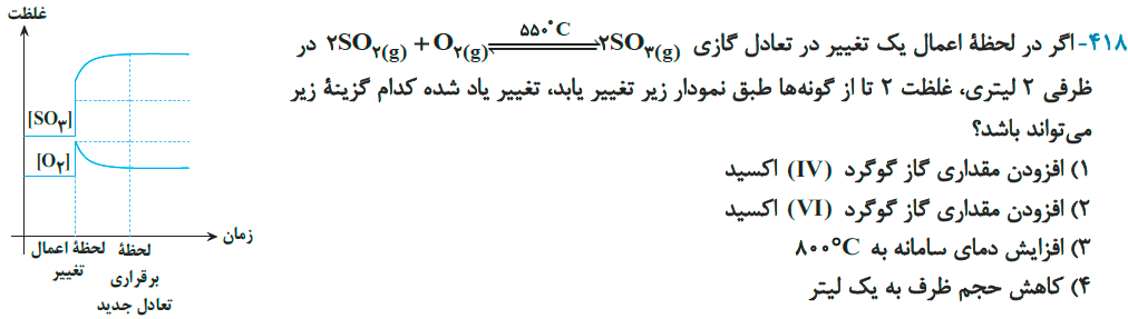 2. تغییر حجم: کم کردن حجم (افزایش فشار) در تعادل گازی واکنش را به سمتی میبرد که فشار مولهای گازی کاهش و حجم افزایش یابد. دقت کنید که لازمه جابهجا شدن تعادل در این حالت، برابر نبودن مجموع ضرایب استوکیومتری مواد گازی واکنش دهندهها و فراوردهها است.