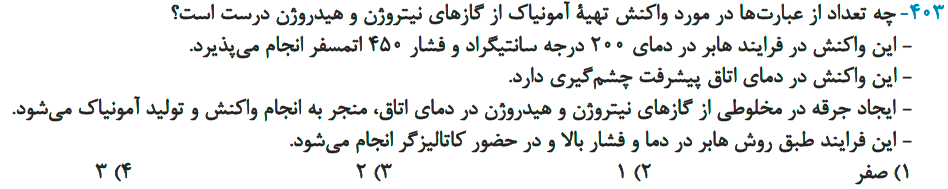 به دلیل بالا بودن انرژی فعالسازی واکنش تولید آمونیاک، این واکنش در شرایط اتاق انجام نمیشود. برای تأمین انرژی فعالسازی میتوانی از افزایش دما بهره ببریم اما باید توجه کرد که با توجه به گرماده بودن واکنش و بنابر اصل لوشاتلیه درصد آمونیاک در مخلوط پایین میآید. پس بهتر است با دماهای کمتر، از کاتالیزگر و افزایش فشار (که خود باعث جابهجایی تعادل در ثبت رفت میشود)، بهره ببریم. بدین ترتیب شرایط بهینه در فشار 200 اتمسفر و دمای 450 درجه سانتیگراد و در حضور آهن به عنوان کاتالیزور، رقم میخورد. در این حالت 28 درصد مولی مخلوط را آمونیاک تشکیل میدهد.