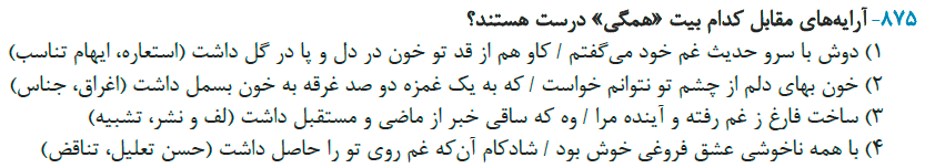 1. دو مصرع یک بیت دقیقا معادل یکدیگر قرار بگیرند(از لحاظ محتوی)