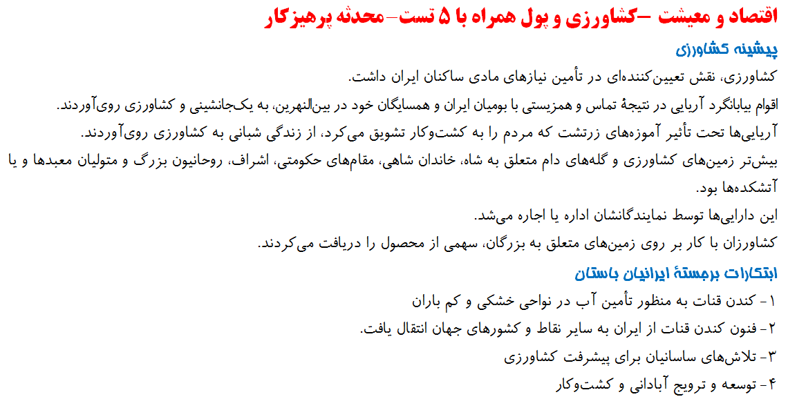 اقتصاد و معیشت -کشاورزی و پول همراه با 5 تست– محدثه پرهیزکار