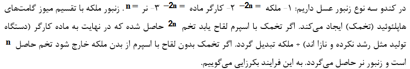 هر زنبور حاصل از لقاح: قطعاً ماده هر زنبور حاصل بکرزایی: قطعاً نر است