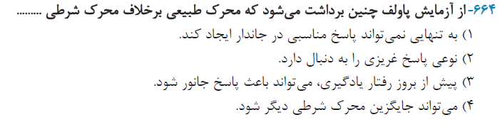 3. محرک طبیعی برخلاف شرطی همواره میتواند پاسخ مناسبی در جاندار ایجاد کند.