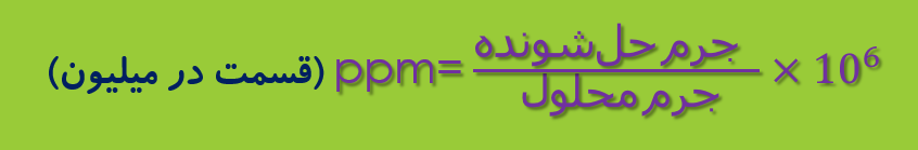 6.قسمت در میلیون:برای بیان غلظت محلول های بسیار رقیق