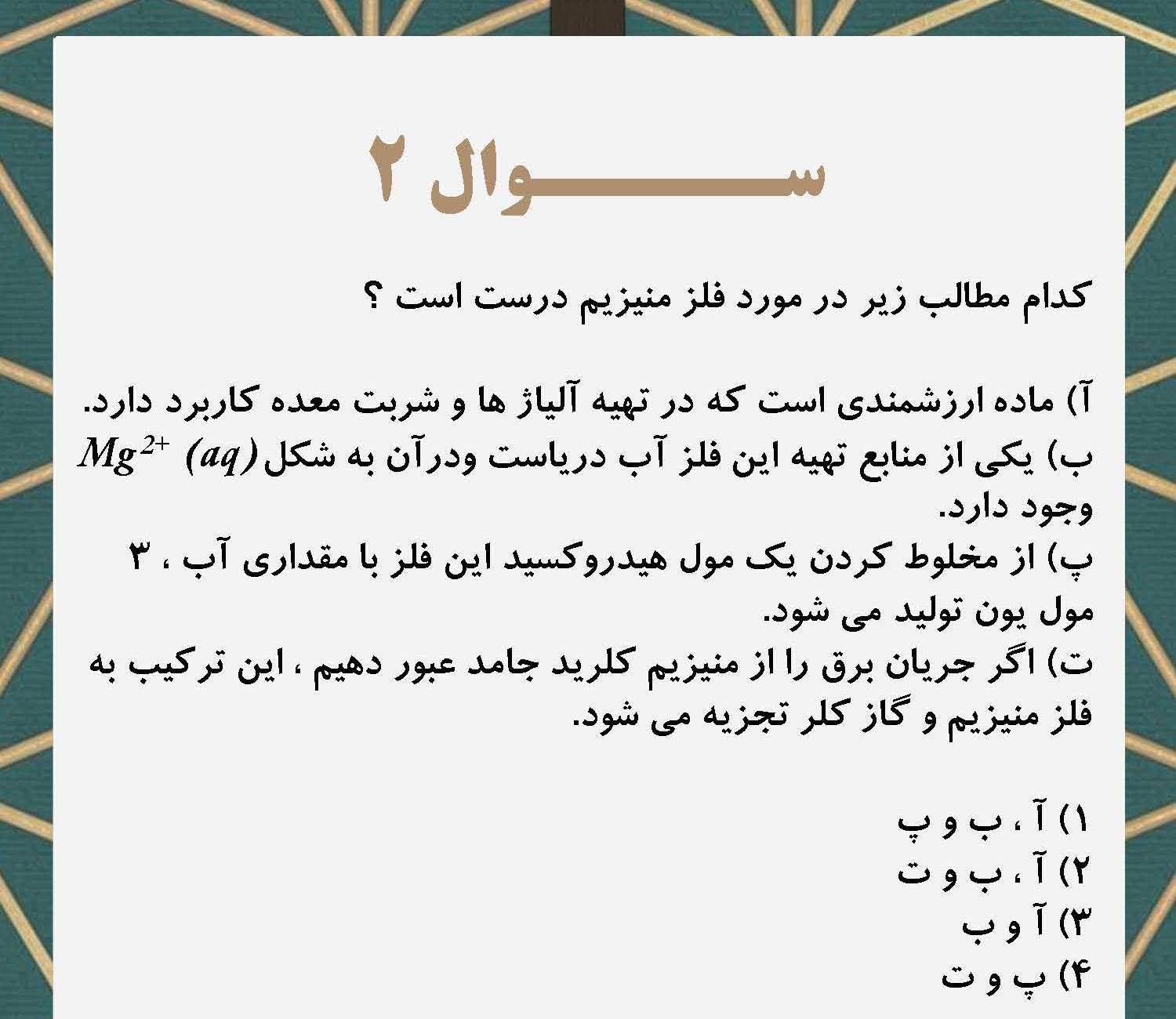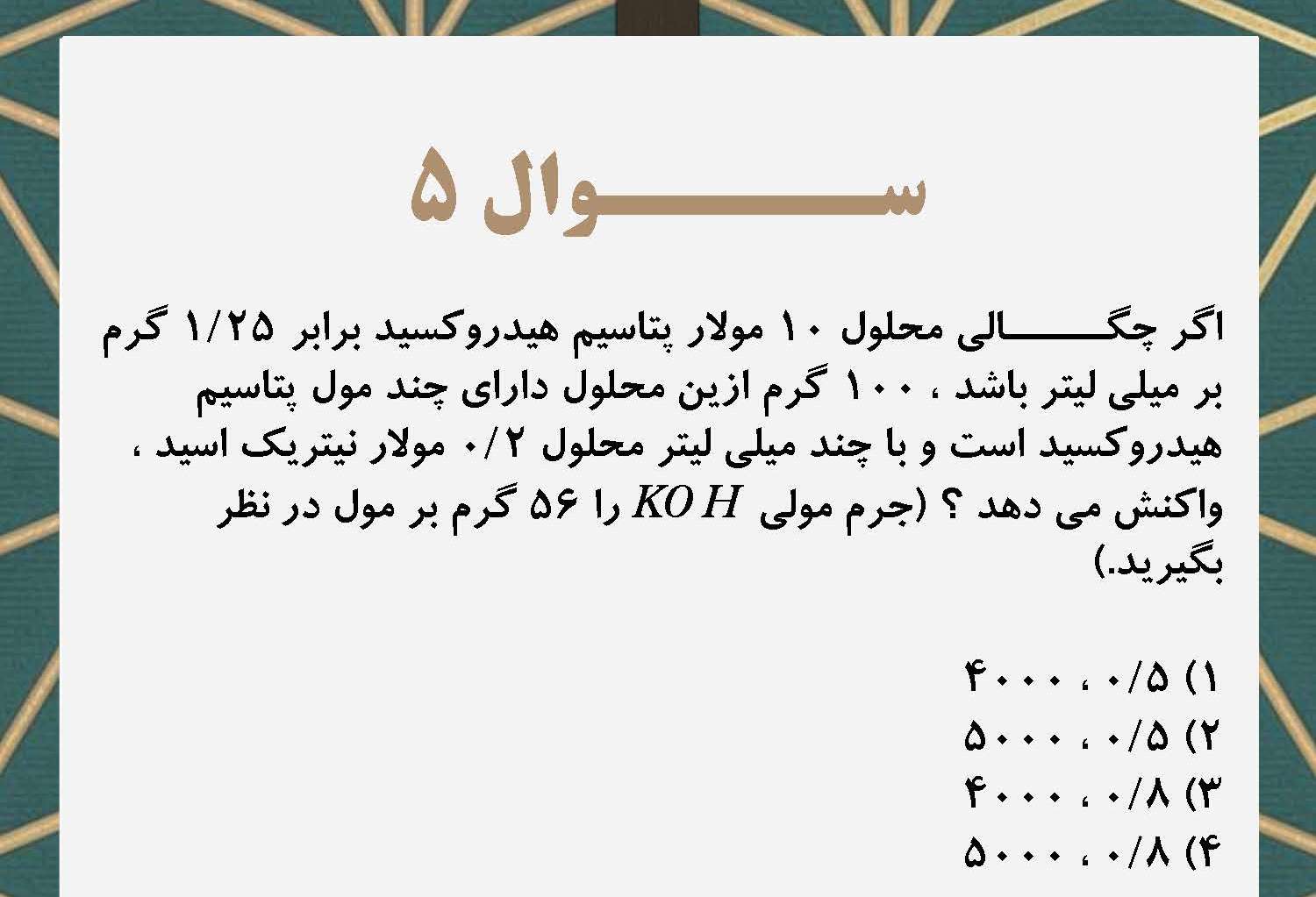 در این آزمونک 5 سوال از فصل آب، آهنگ زندگی آورده شده است تا تسلط خود را افزایش دهید.