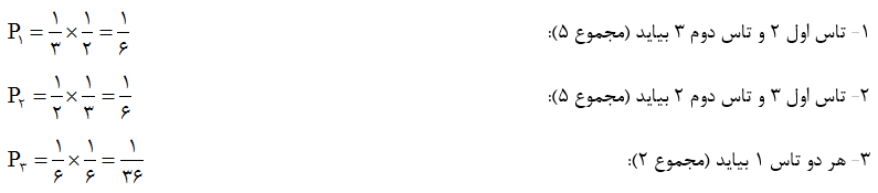 همچنین دقت کنید که پرتاب هر تاس، مستقل از دیگری است.