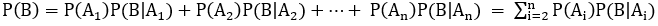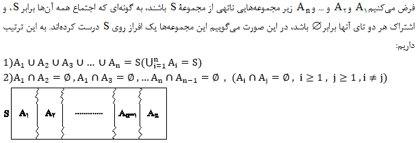 احتمال کل: احتمال پیشامد B برابر است با مجموع احتمالهای آن در هر قسمت از فضا.