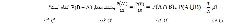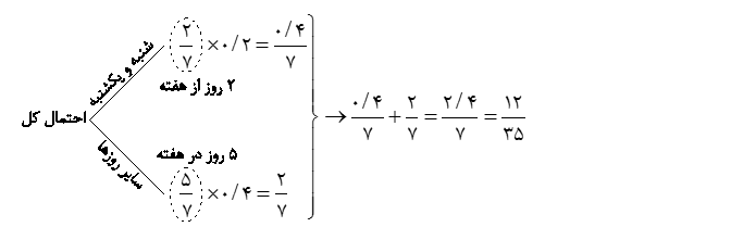 -- اگر احتمال تأخیر مترو در یک ایستگاه در روزهای شنبه و یکشنبه 0/8 و در سایر روزهای 0/6 باشد. با چه احتمالی مترو به موقع به ایستگاه میآید؟
