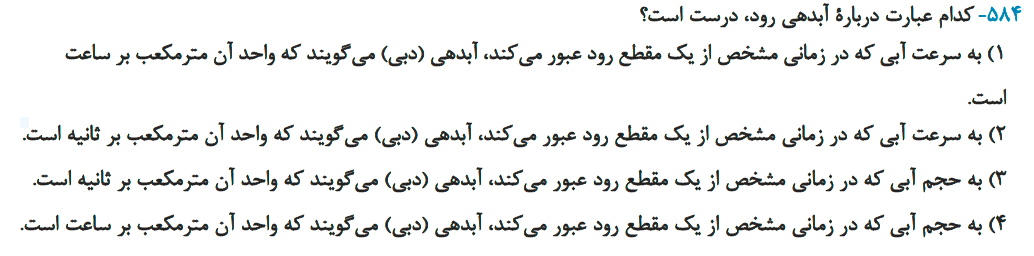 به حجم آبی که در زمانی مشخص از یک مقطع معین رود عبور میکند، آبدهی رود (دبی) میگویندکه واحد آن (مترمکعب بر ثانیه) است.