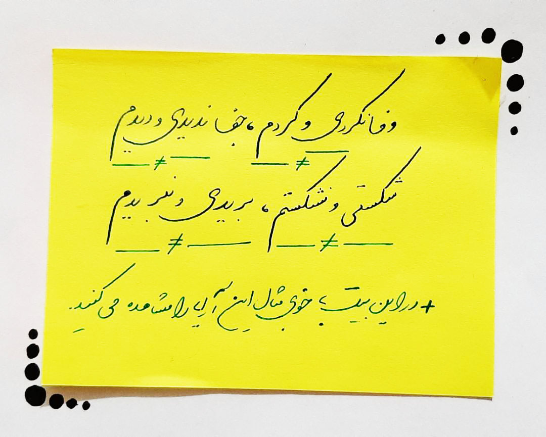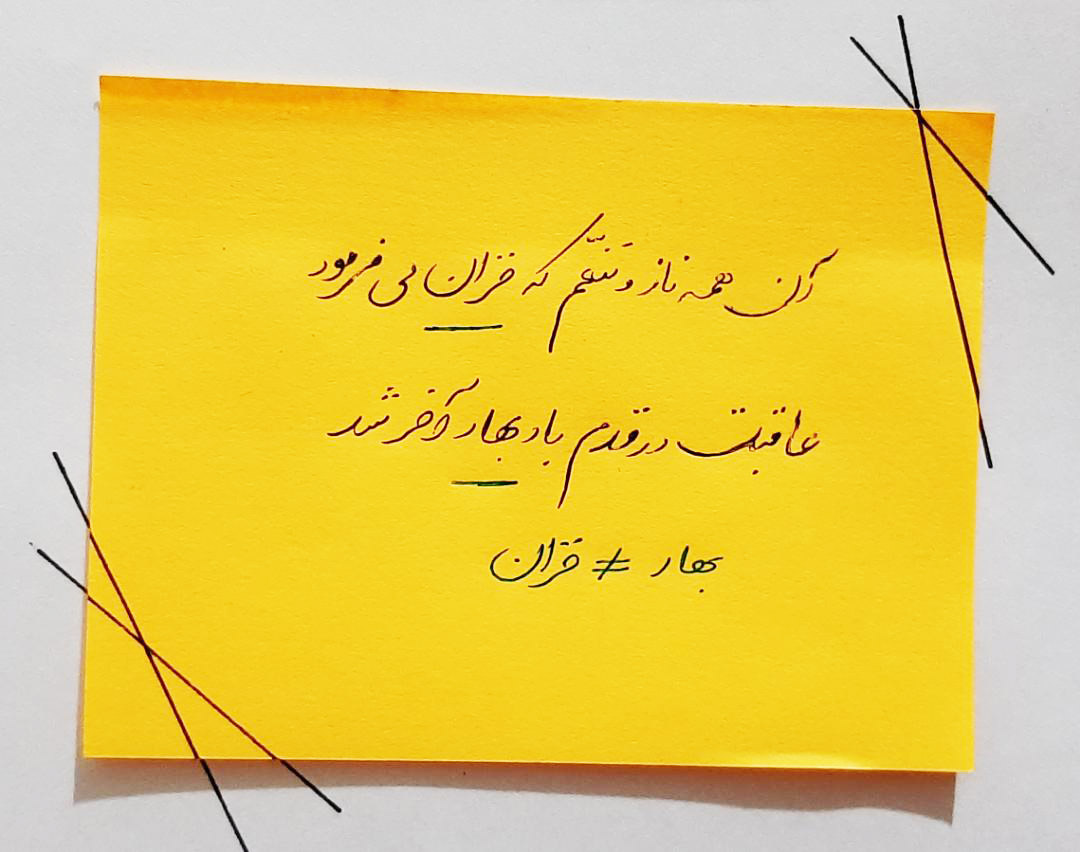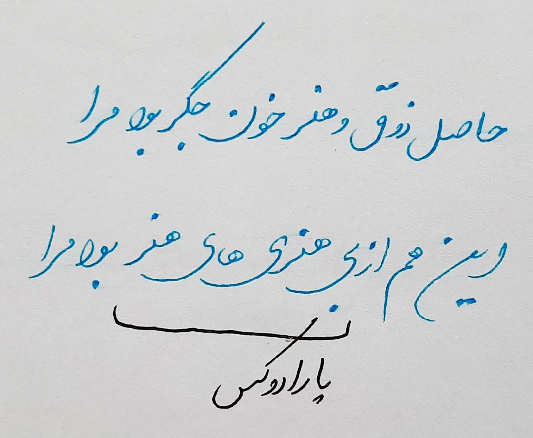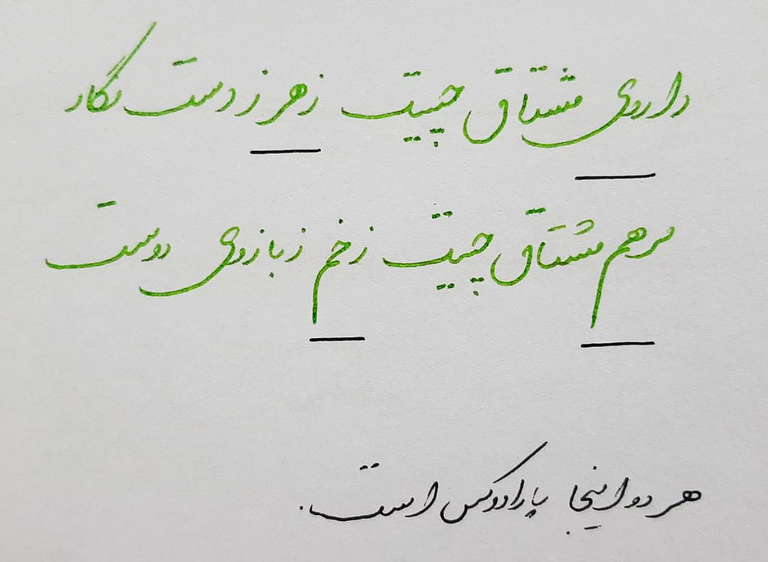 کامنت کاربر: کس بهار من را در خزان ندیدودولتی بهتر از گمنامی نخواهی یافت پارادوکس دارن؟ میشه از لحاظ مفهومی یک نفر توضیح بده چرا پارادوکس دارن؟❤ _ تاریخ ثبت: 13991111 ثبت شده در صفحه مقطع: یازدهم