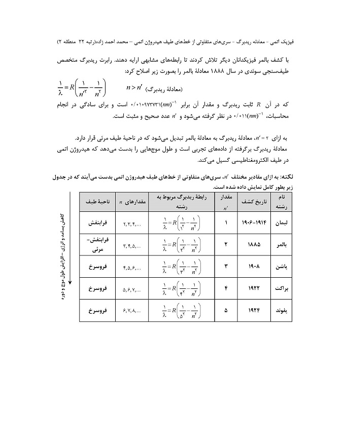 فیزیک اتمی - ریدبرگ -محمد احمد زاده -رتبه 22 منطقه 2