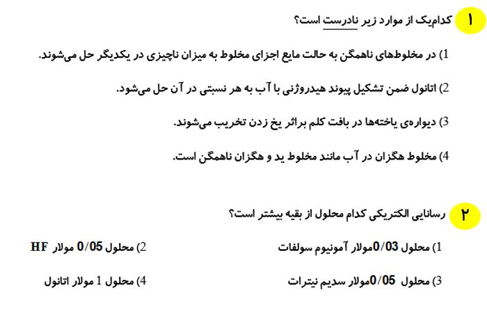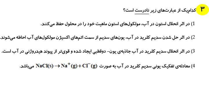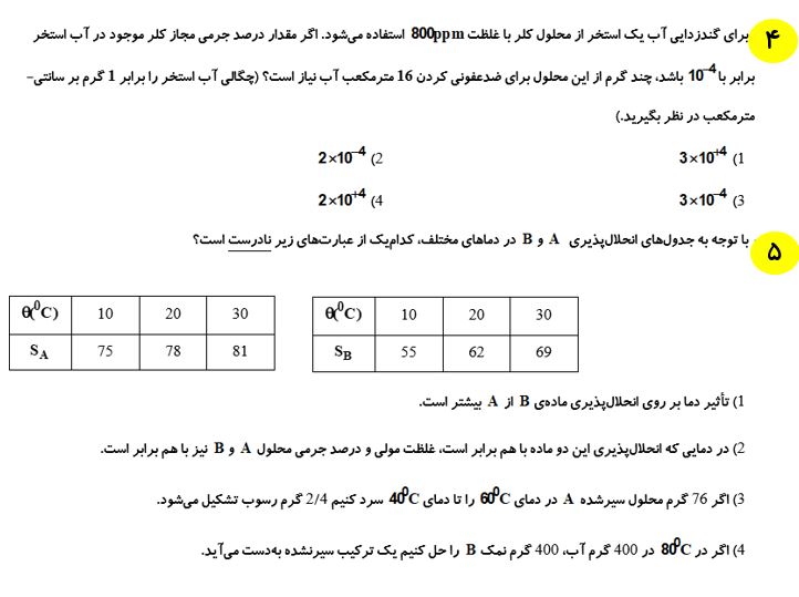 در این آزمونک 5 سوال شیمی دهم( به همراه پاسخ) از فصل آب،آهنگ زندگی ، متناسب با آزمون 29 اردیبهشت آمدهاست.