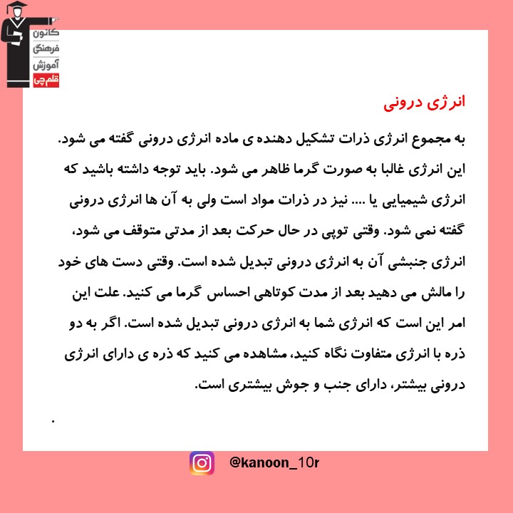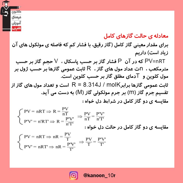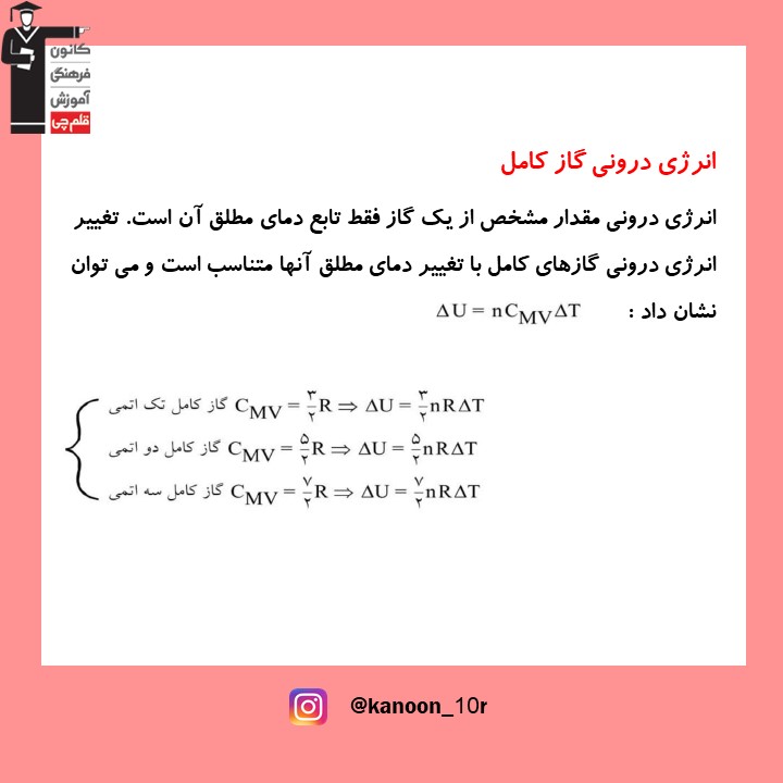 سلام به دانشآموزان عزیز دهم ریاضی در این مطلب، خلاصه نکات «انرژی درونی ومعادله حالت گاز کامل» مربوط به فصل ترمودینامیک فیزیک دهم منطبق با آزمون 31 اردیبهشت آورده شده است.تهیه شده توسط : فاطمه احدزاده (دانشجوی مهندسی پلیمر دانشگاه تهران)