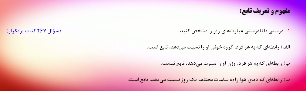 در این مطلب چند نمونه سؤال مهم به همراه پاسه تشریحی از مبحث مفهوم تابع از کتاب پرتکرار برای شما انتخاب شده است.