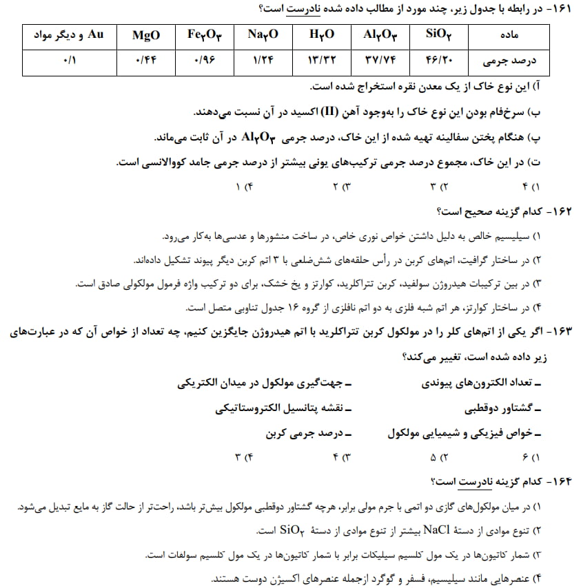 !!! در پیوست این مطلب سوالات شیمی 3 آزمون قلم چی 26 اردیبهشت سال گذشته برای شما عزیزان قرار داده شده است؛ حل و بررسی این سوالات برای آمادگی در آزمون پیش رو الزامی است.!!!