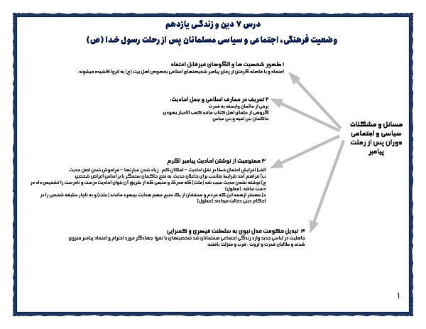 در این مطــلب جزوهای از درس وضعیت مسلمانان پس از رســول خدا (درس 7 دین و زنـدگی یازدهم) آورده شده اســت.