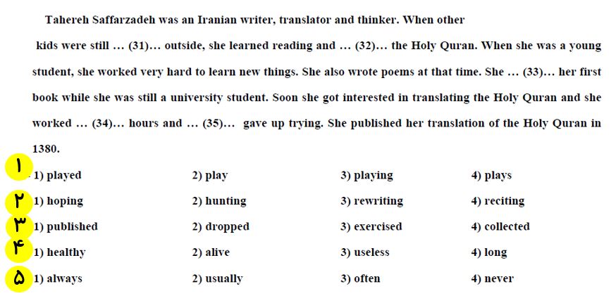 نمونه سوال تستی زبان آمادگی آزمون 31 اردیبهشت دهم +پاسخدر این فایل 10 سوال تستی زبان دهم (به همراه پاسخ) متناسب با آزمون 31 اردیبهشت آمدهاست.برای مشاهده ی کامل سوالات و پاسخ آن ها، به فایل پیوست مراجعه کنید.
