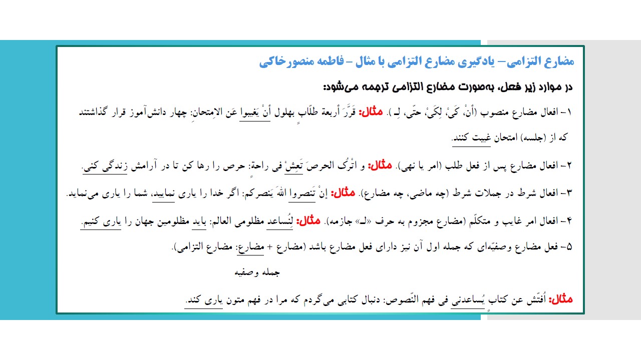 در این مــطلب برای شما عزیزان درسنامـــهای از مبحث مربوط به فعل مضــارع التزامی آماده کــردیم.