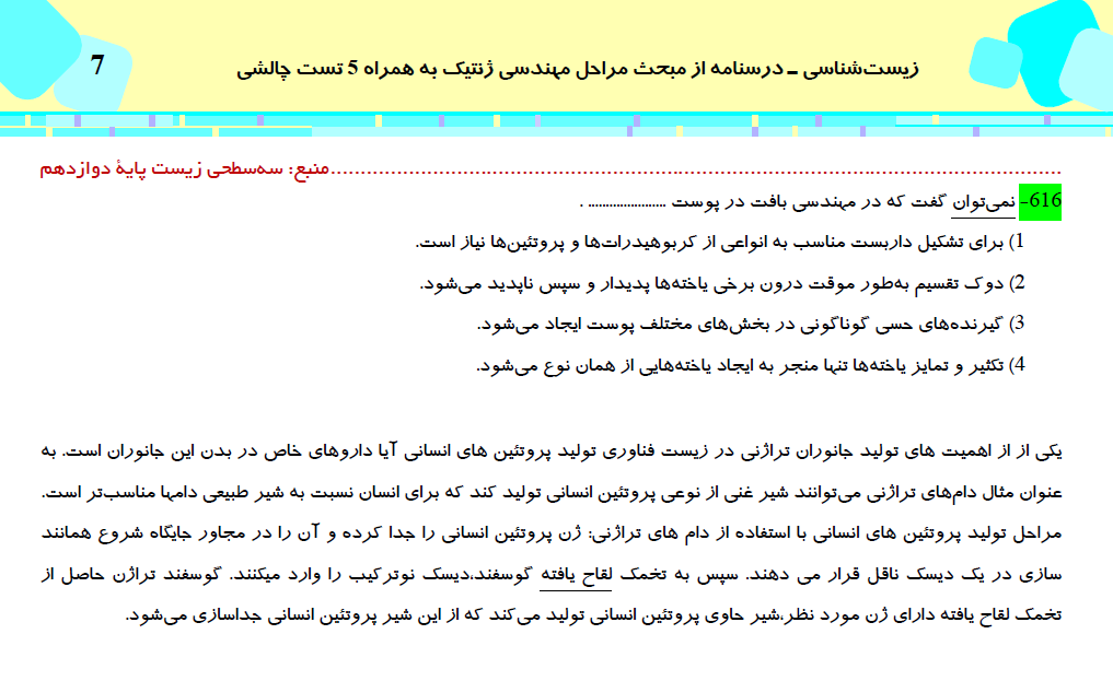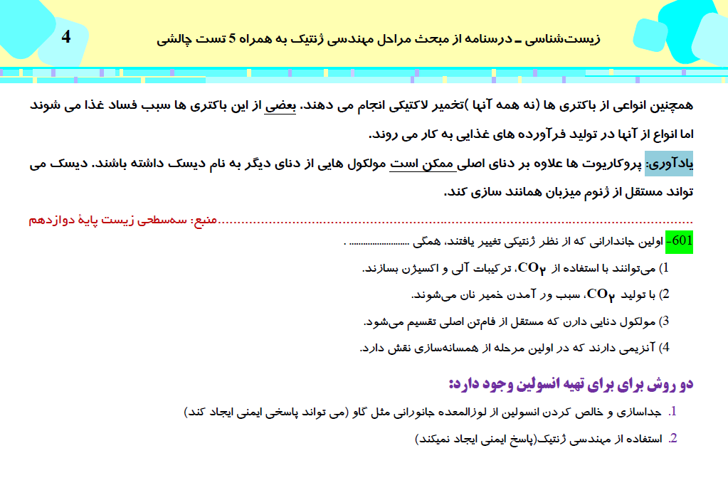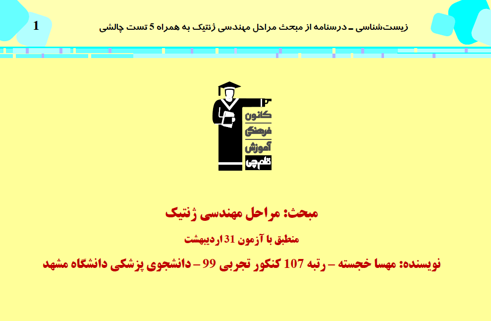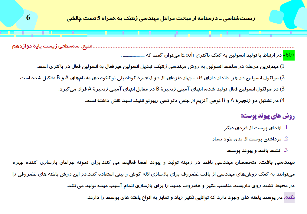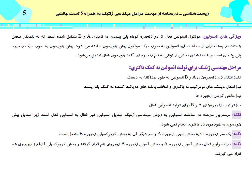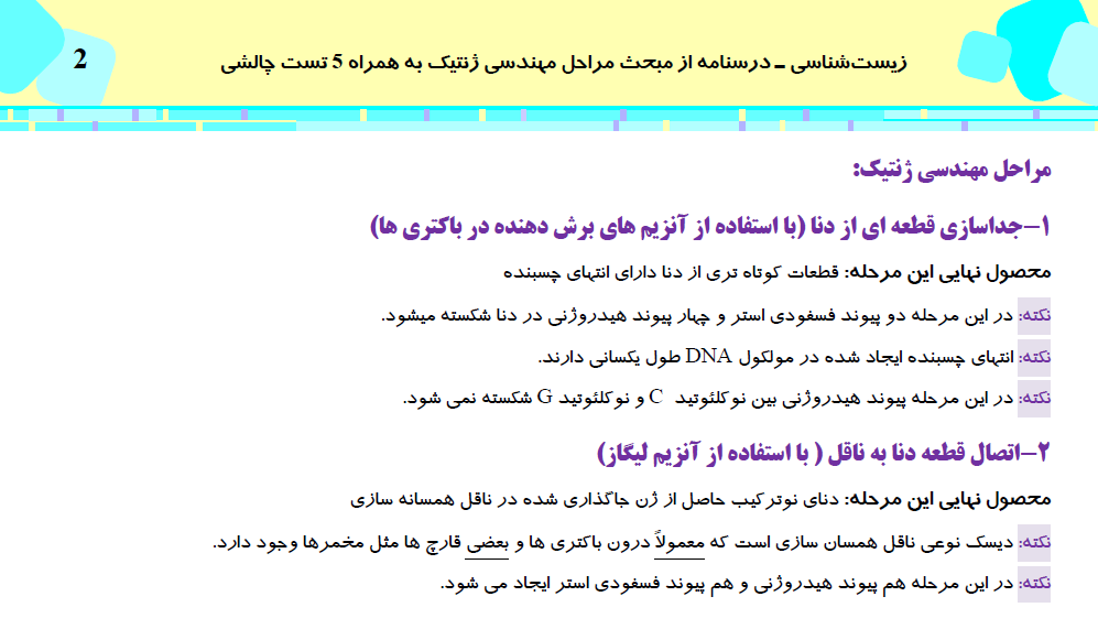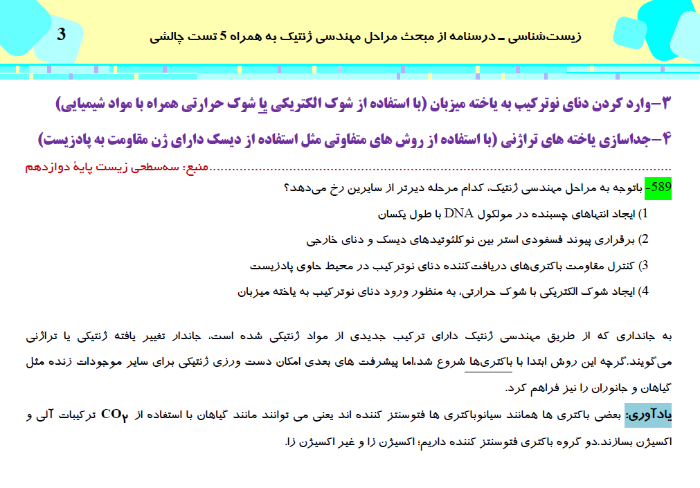 این مطلب شامل درسنامه با 5 تست چالشی از کتاب سه سطحی زیست شناسی (3)، مبحث مراحل مهندسی ژنتیک، مطابق با برنامه راهبردی آزمون 31 اردیبهشت می باشد.
