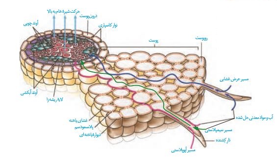 - حرکت مواد از طریق درون پوست فقط در مسیر سیمپلاستی انجام میگیرد و نوار کاسپاری مانع عبور مواد از طریق آپوپلاستی میشود.